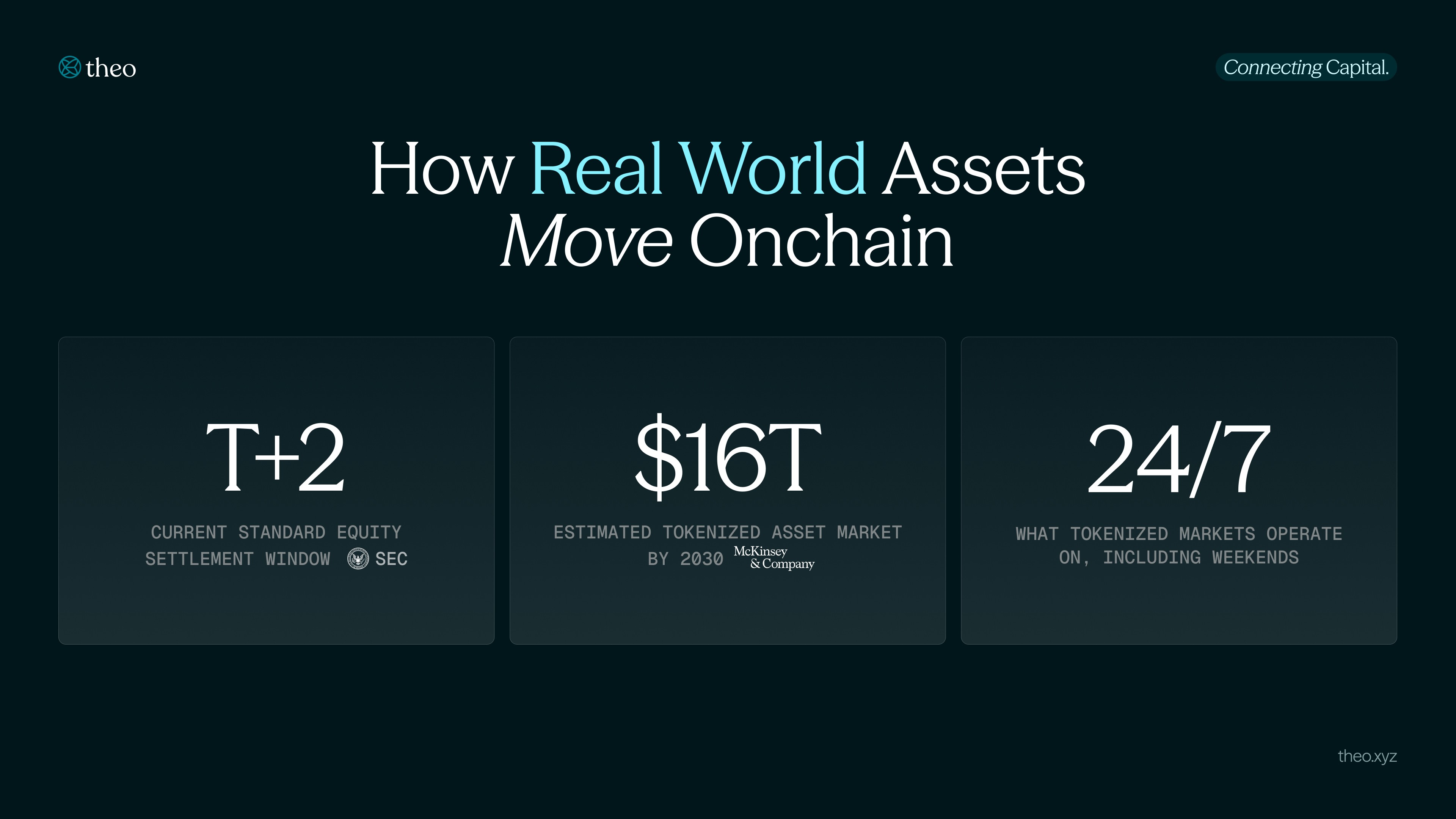 The more sophisticated builders in this space have recognized a harder lesson: issuing the token is only half the job. A tokenized asset with no secondary market, no accepted collateral framework, and no integration into trading venues is functionally inert, a better certificate of ownership but not yet a better financial instrument. A small number of platforms are now treating liquidity as a design requirement from day one rather than something that develops organically after launch. Theo, built by former market makers from IMC Trading and Optiver, launched thBILL (an onchain exposure to institutional US Treasury strategies managed by Wellington Management, in partnership with Standard Chartered’s Libeara) with integrated market making, lending protocol support, and multi-chain deployment built into the product from launch across Ethereum, Base, Arbitrum, and HyperEVM. The token can be traded, posted as collateral, or put to work in DeFi protocols without conversion. It is a live demonstration of what the liquidity problem actually requires: not just issuance infrastructure, but the full market structure that makes a tokenized asset worth holding.